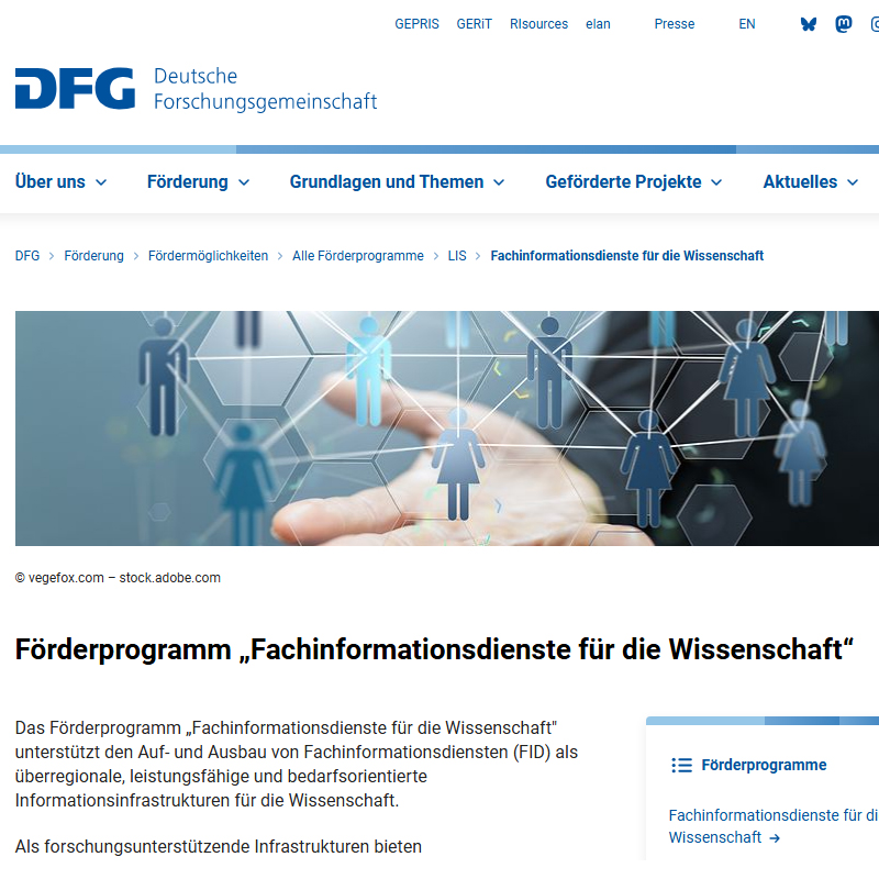 Mit der Einführung von FIDplus erweitert die Deutsche Forschungsgemeinschaft (DFG) ihr Förderprogramm für Fachinformationsdienste um eine neue Programmlinie mit langfristiger Perspektive. Ziel ist es, besonders etablierte und leistungsfähige FID über die bisherige maximale Förderdauer hinaus projektförmig zu unterstützen und damit die nachhaltige Bereitstellung zentraler wissenschaftlicher Informationsdienste zu sichern.